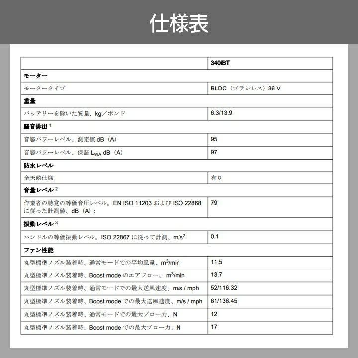 他の画像を見る 340iBT 967796203 ハスクバーナ 36V ハスクバーナ ブロワ 340iBT 967796203 排気量 36V 充電式 背負い 最大風量 11.5m3/min 6.3kg バッテリー・充電器別売 ブロワー ブロアー 価格 ¥ 55,488 税込 カートに入れる お気に入りに登録する (0)