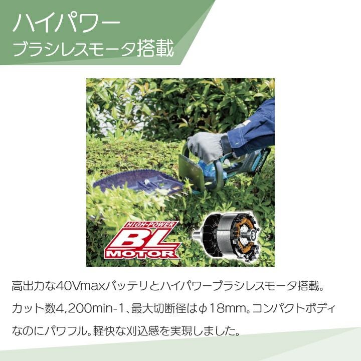 他の画像を見る ヘッジトリマー 充電式 マキタ MUH018GZ ヘッジトリマ マキタ 充電式 ヘッジトリマ MUH018GZ ヘッジトリマー 40Vmax 400mm バッテリー・充電器別売 両刃 2.6kg 価格 ¥ 39,930 税込 カートに入れる お気に入りに登録する (0)