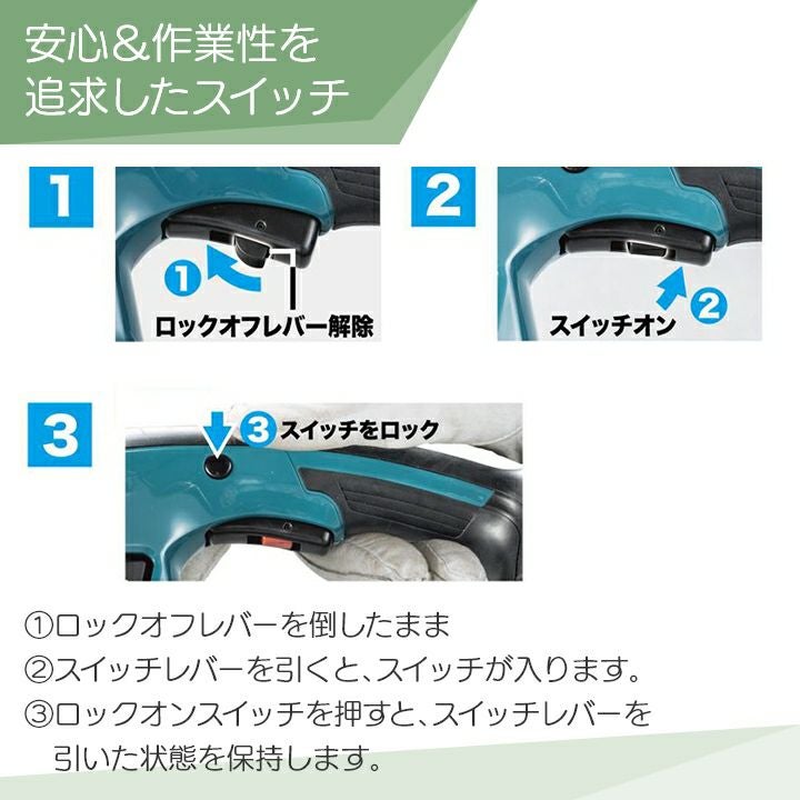他の画像を見る ヘッジトリマー 充電式 マキタ MUH019GZ ヘッジトリマ 【在庫有】 マキタ 充電式 ヘッジトリマ MUH019GZ ヘッジトリマー 40Vmax 460mm バッテリー・充電器別売 両刃 2.7kg 価格 ¥ 36,226 税込 カートに入れる お気に入りに登録する (0)
