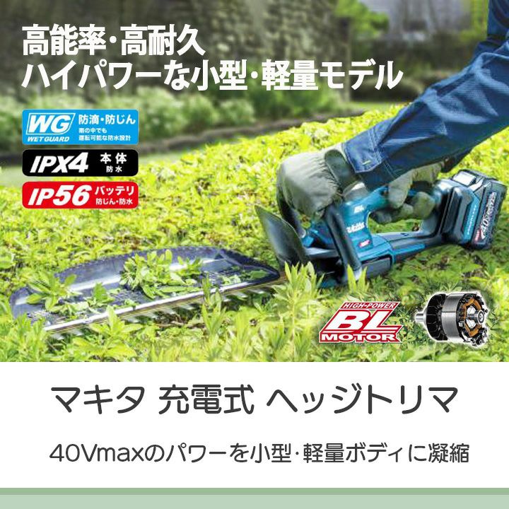 他の画像を見る ヘッジトリマー 充電式 マキタ MUH018GWA ヘッジトリマ マキタ 充電式 ヘッジトリマ MUH018GWA ヘッジトリマー 40Vmax 400mm バッテリー・充電器付き 両刃 2.6kg 価格 ¥ 58,155 税込 カートに入れる お気に入りに登録する (0)