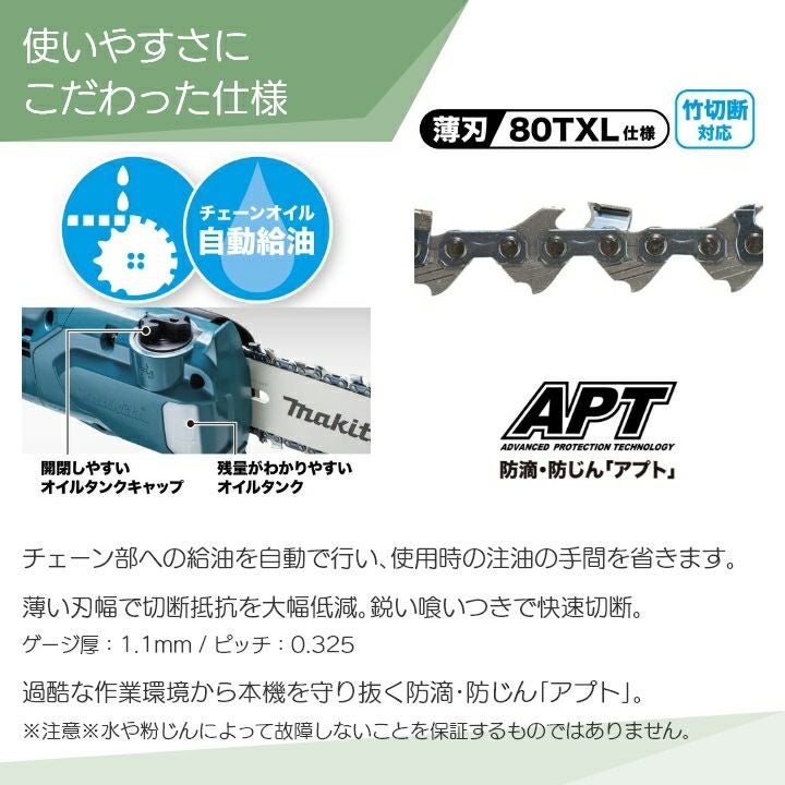 他の画像を見る makita チェンソー 高枝 18V バッテリー マキタ 充電式 チェーンソー MUA200DZ 18V 高枝チェーンソー 本体のみ makita 枝木 価格 ¥ 36,548 税込 詳細を見る お気に入りに登録する (0)