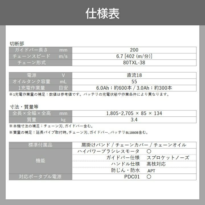 他の画像を見る マキタ チェーンソー 充電式 40Vmax 400mm マキタ 充電式 チェーンソー MUC027GZR3 40Vmax 本体のみ バッテリー・充電器別売 価格 ¥ 53,354 税込 カートに入れる お気に入りに登録する (0)