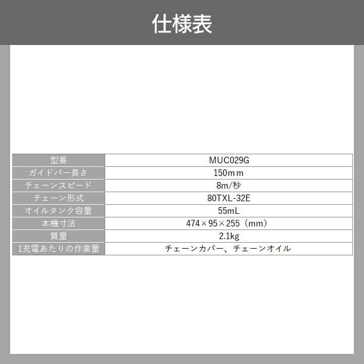 他の画像を見る マキタ チェーンソー 充電式 40Vmax 300mm マキタ 充電式 チェーンソー MUC027GZR1 40Vmax 本体のみ バッテリー・充電器別売 価格 ¥ 51,158 税込 カートに入れる お気に入りに登録する (0)