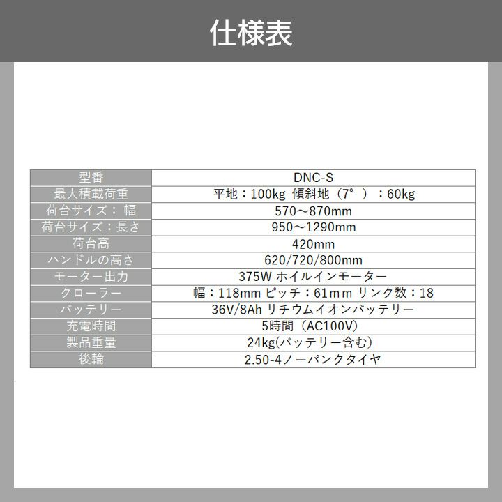 他の画像を見る 営業所止 電動運搬車 法人宛のみ宅配可 アルミス 電動猫吉クローラー DNC-S 最大荷重100kg 電動 運搬車 台車 カート 農作業 農業 ALUMIS 価格 ¥ 280,832 税込 カートに入れる お気に入りに登録する (0)