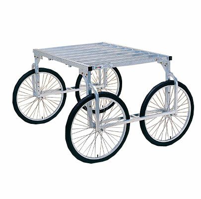 場所に応じて、4とおりの組み方ができ、用途に合わせて高さ、タイヤ幅を変更できます。 強力なので、キャベツ等の重量物野菜の収穫にもピッタリです。 【製品仕様】 積載重量:150kg 20インチタイヤ 重量 18kg