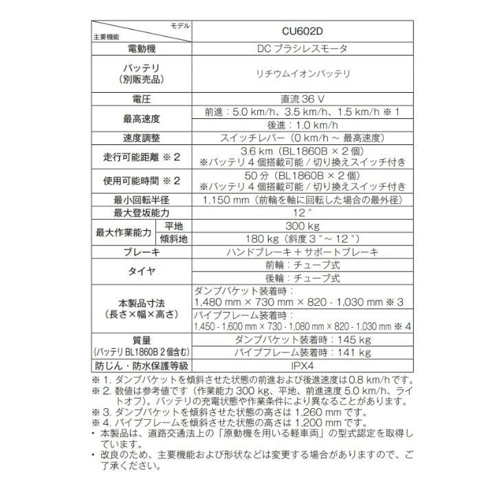 他の画像を見る マキタ 運搬車 充電式 運搬車 36V 営業所止め マキタ 運搬車 充電式 CU601DZ フラットフレーム仕様 CU602DZ ダンプバケット仕様 18V×2=36V バッテリー・充電器別売 価格 ¥ 886,590 税込 詳細を見る お気に入りに登録する (0)