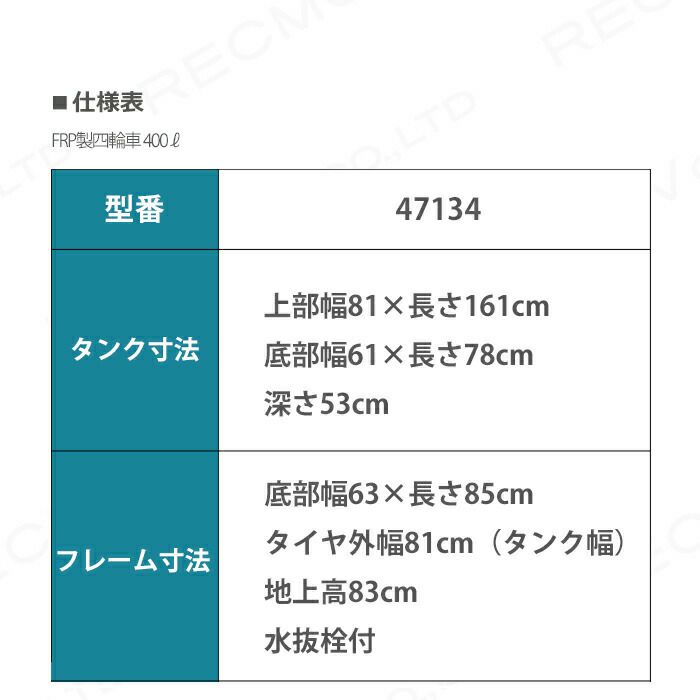 他の画像を見る 法人様限定 送料別途お見積り 酪農 業務用 入荷未定 【タンクのみの販売(フレーム別売)】 FRP製四輪車 400リットル 47128 四輪車 4輪車 運搬車 FRP製 飼料運搬車 畜産用品 酪農用品 価格 ¥ 62,964 税込 在庫切れ 詳細を見る お気に入りに登録する (0)