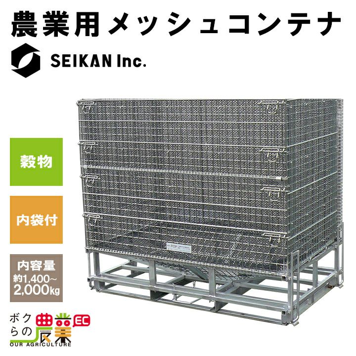 フォークリフトで運搬 内袋付 折りたたみ可能 農産用 ホッパーコンテナ POP-0 穀物 フレコンから切替 回転リフト不要 作物 セイカン 輸送 農業用 稲作 米 豆 麦 芋 馬鈴薯 じゃがいも 鉄コンテナ メッシュパレット