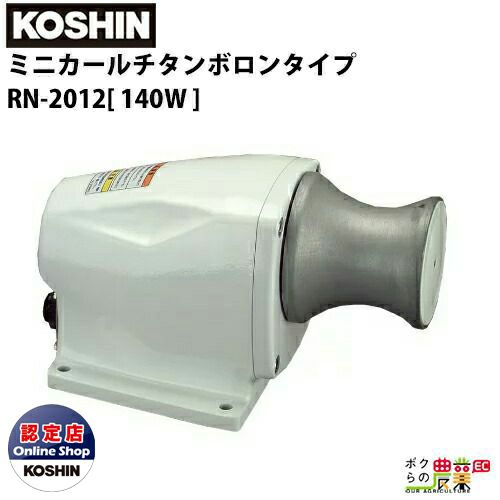 工進 ミニカール チタンボロンタイプ RN-2012 電圧:DC-12V 電流:15A モーター出力:140W 定格時間:1h/15A ローラー回転数:100rpm 巻上能力(手ぐり):最大(瞬間)50kg(45A)          常用(定格)35kg(15A) 巻上速度:27m/min ブレーカー:15A 重量:9kg 標準付属品:ブレーカー1ヶ、パッキン1ヶ、電源コード(5.5スケ×10m×2芯) 1本、丸小ネジM4×8 2ヶ、ナットM4 2ヶ、圧着端子4ヶ