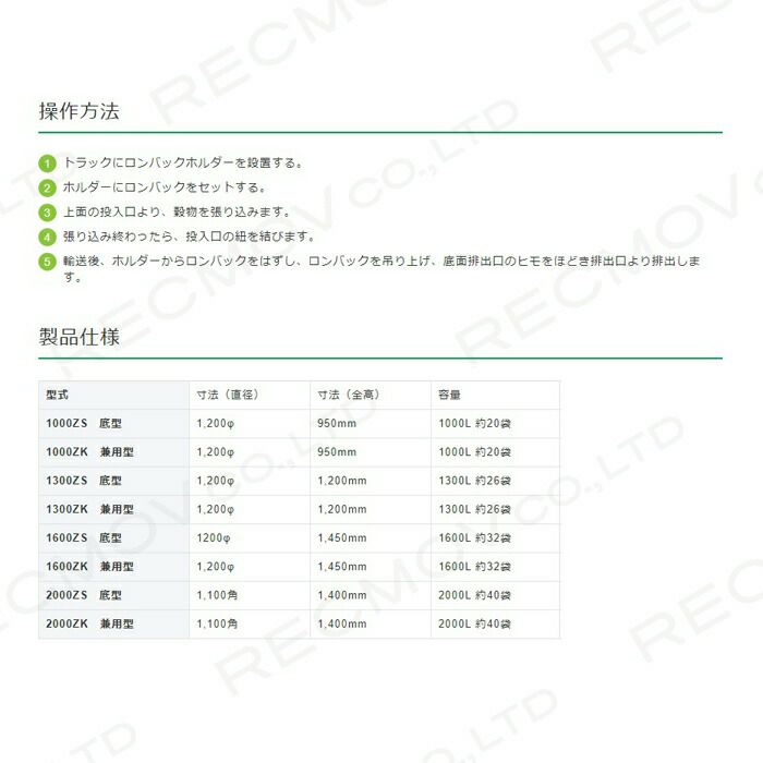 他の画像を見る 三洋 穀物収穫フレコン 容量1000L 三洋 ロンバックZ 1000ZK 025141 PP・兼用型 穀物 収穫 フレコン 価格 ¥ 28,258 税込 詳細を見る お気に入りに登録する (0)