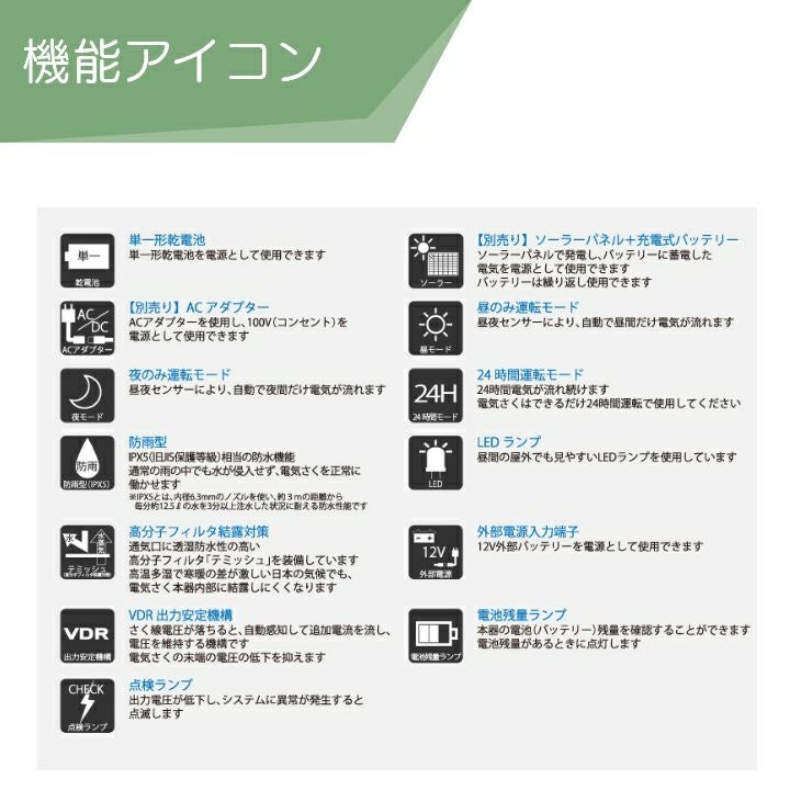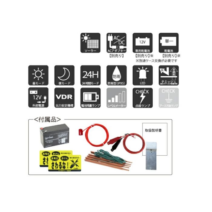 他の画像を見る 電気柵 ソーラー セット 電気さく タイガー 小動物対策 電気柵 ソーラー セット 600m タイガー 小動物対策 電気柵 タイガー 3段張 SA30SL 獣害対策商品 防獣商品 アライグマ たぬき 対策 価格 ¥ 209,398 税込 カートに入れる お気に入りに登録する (0)