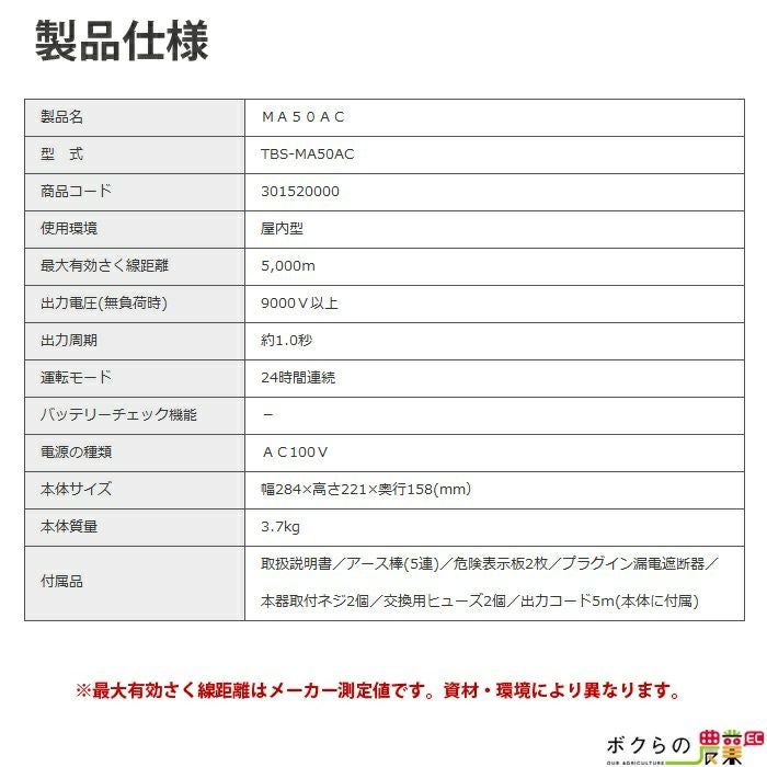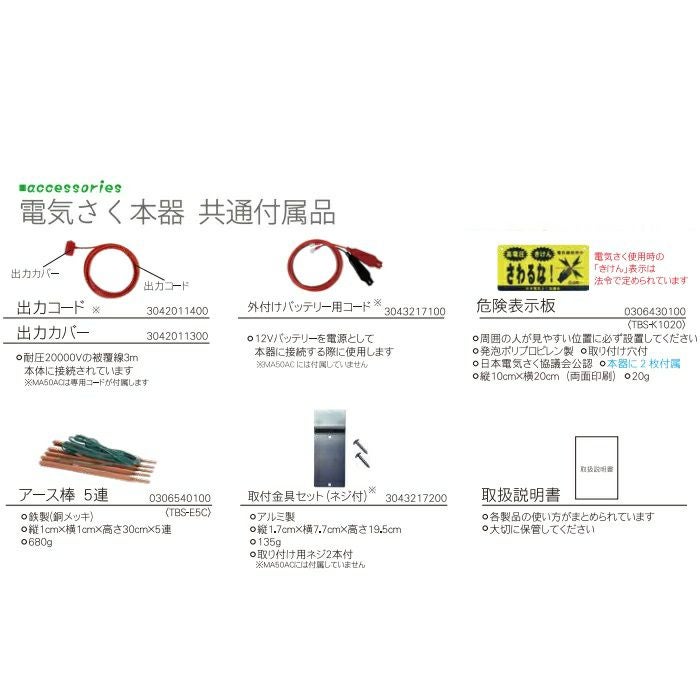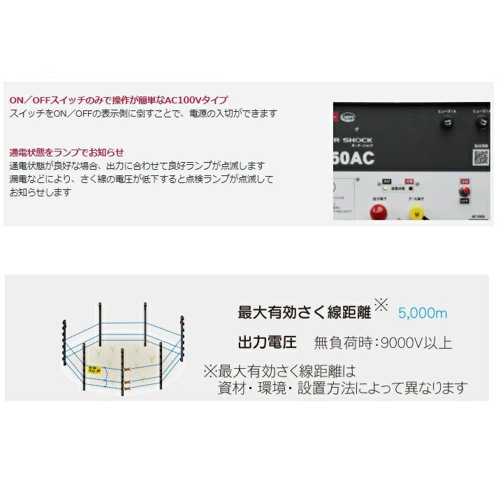 他の画像を見る 電気柵 タイガー 電気さく コンセント式 獣害対策 電気柵 タイガー MA50AC 本体 AC100V 9000V 5000m 屋内 獣害対策商品 防獣商品 価格 ¥ 57,258 税込 詳細を見る お気に入りに登録する (0)