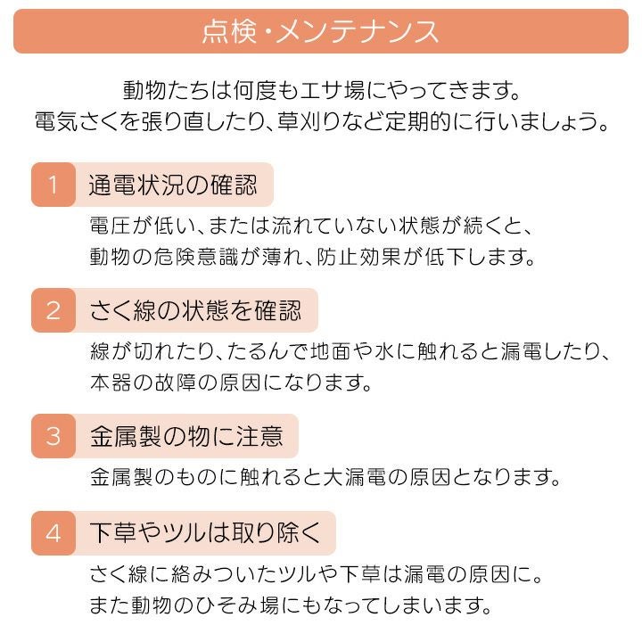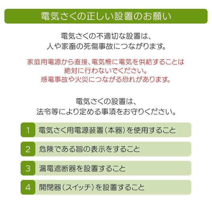 他の画像を見る 電気柵 ソーラー セット 電気さく タイガー サル対策 猿 電気柵 ソーラー セット 100m タイガー サル対策 電気柵 タイガー 2段張 SA30SL 獣害対策商品 防獣商品 エレキネット 防獣ネット さる 猿 対策 価格 ¥ 268,695 税込 カートに入れる お気に入りに登録する (0)