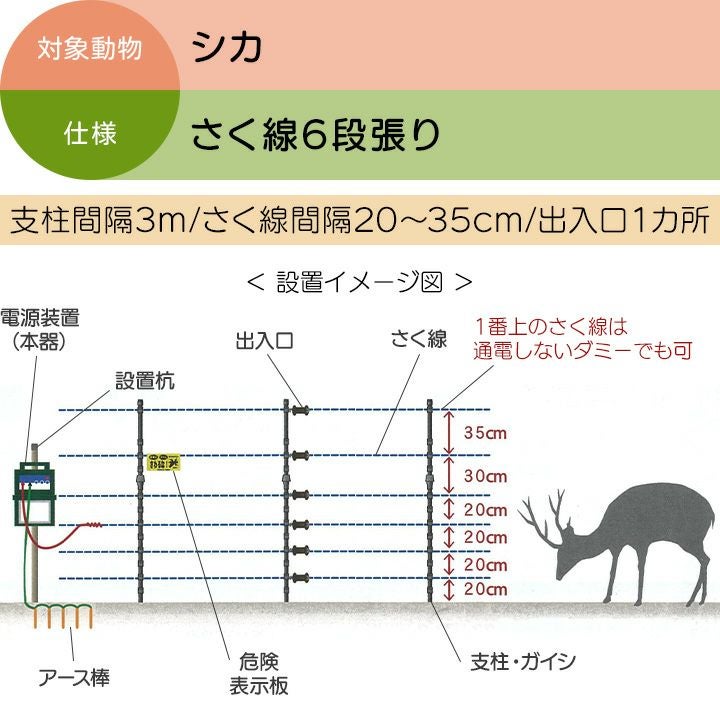 他の画像を見る 電気柵 ソーラー セット 電気さく タイガー シカ対策 鹿 電気柵 ソーラー セット 120m タイガー シカ対策 電気柵 タイガー 6段張 SA30SL 獣害対策商品 防獣商品 鹿 しか 対策 価格 ¥ 150,703 税込 カートに入れる お気に入りに登録する (0)