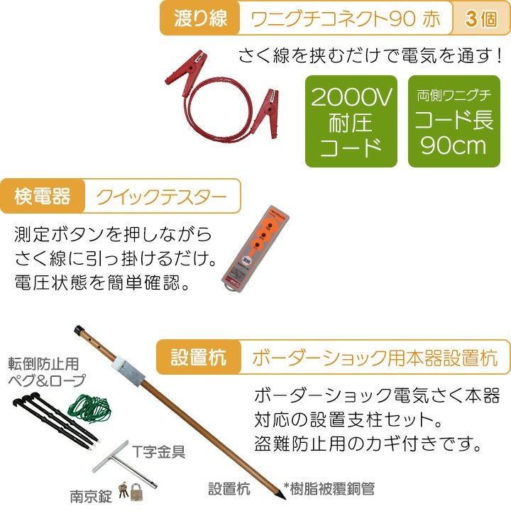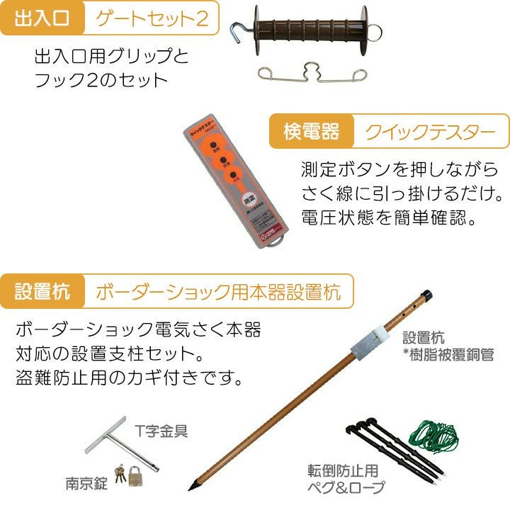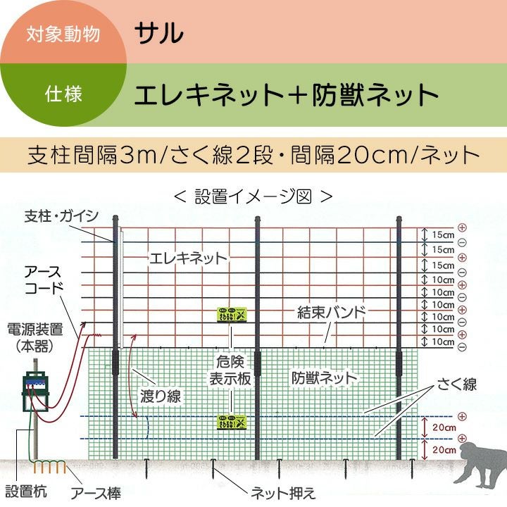 他の画像を見る 電気柵 セット 電気さく タイガー サル対策 猿 電気柵 セット 200m タイガー サル対策 電気柵 タイガー 2段張 SA30DC 獣害対策商品 防獣商品 エレキネット 防獣ネット さる 猿 対策 価格 ¥ 399,137 税込 カートに入れる お気に入りに登録する (0)