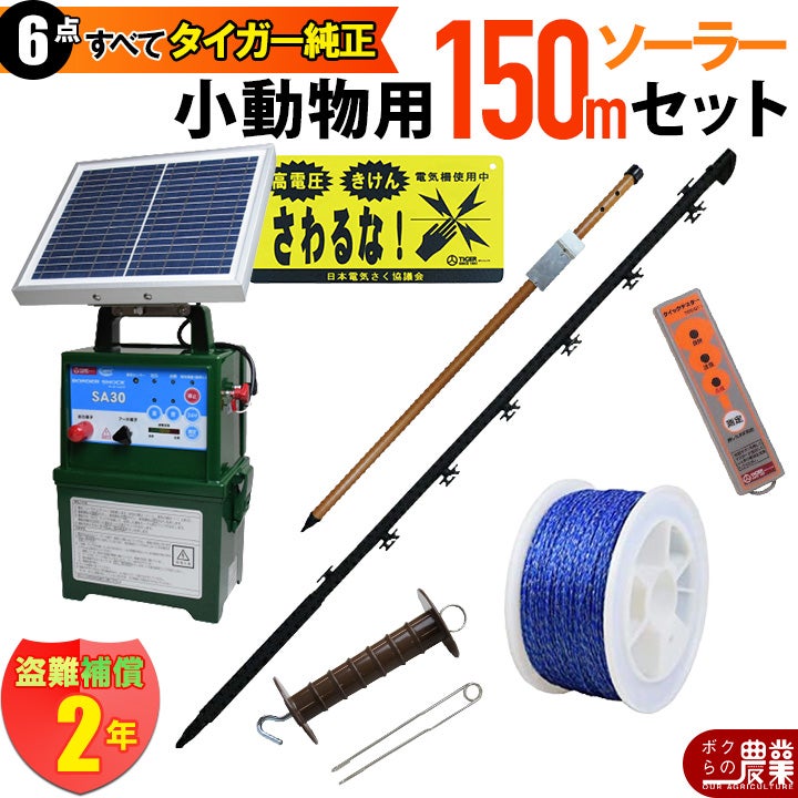 タイガー 電気さくセットDS ソーラータイプ 小動物対策 周囲150m さく線3段張仕様 出入口1カ所 セット内容詳細 商品の詳しい情報は「詳細はこちら」をご覧ください。