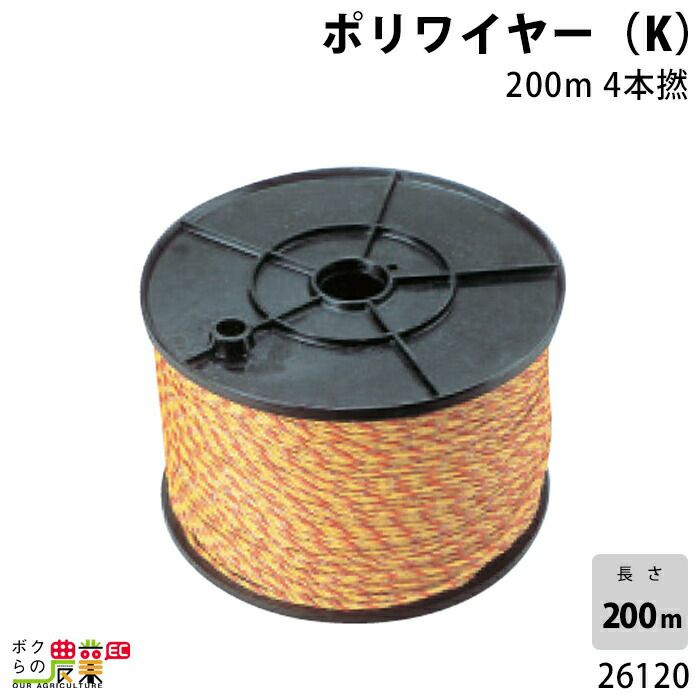 畜産用 ポリワイヤー (K) 200m 4本撚 26120 電柵用品 畜産 酪農 牧畜 産業動物 牛 豚 養豚 家畜 畜産用品