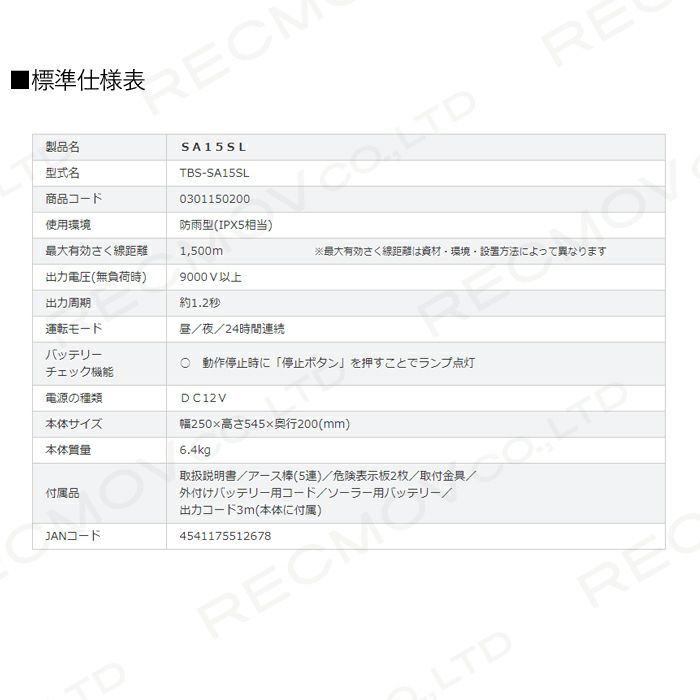他の画像を見る 電気柵 タイガー 電気さく 電池タイプ 獣害対策 電気柵 タイガー SA15DC 本体 電池 DC12V 9000V 1500m 防雨 獣害対策商品 防獣商品 価格 ¥ 43,711 税込 詳細を見る お気に入りに登録する (0)