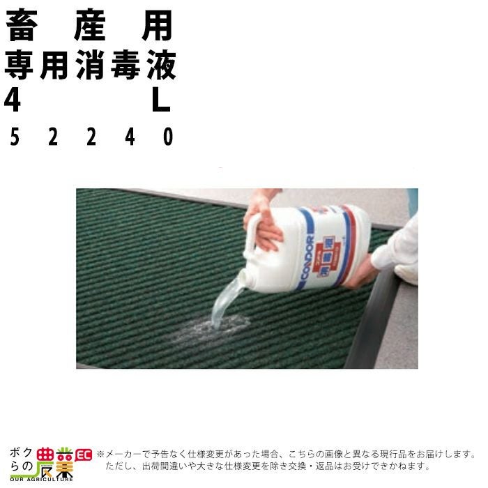 送料別途お見積り 酪農用品 業務用 農業 農作業 受注生産 納期別途ご案内 畜産用 専用消毒液 4L 52240 畜産 酪農 牧畜 産業動物 牛 豚 養豚 家畜 畜産用品