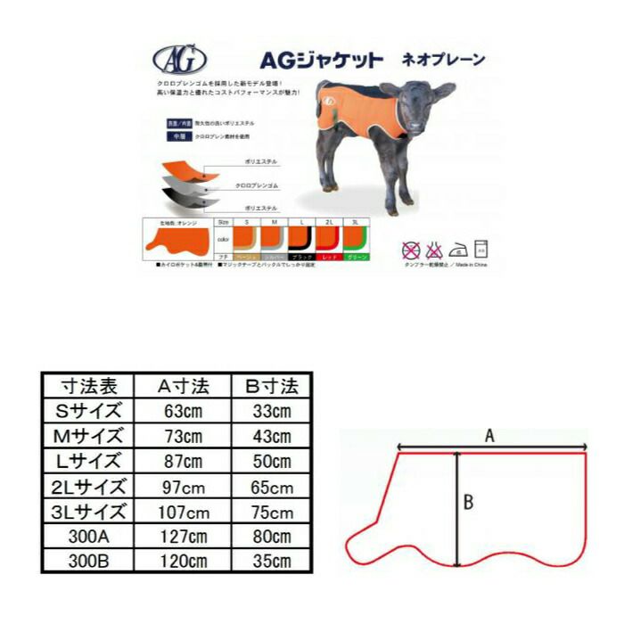 他の画像を見る 代引不可 畜産 酪農 用品 AGジャケット プレミアム ネオ S 子牛用 防寒着 仔牛 AG 牛 冬 ジャケット カウ 価格 ¥ 9,847 税込 詳細を見る お気に入りに登録する (0)