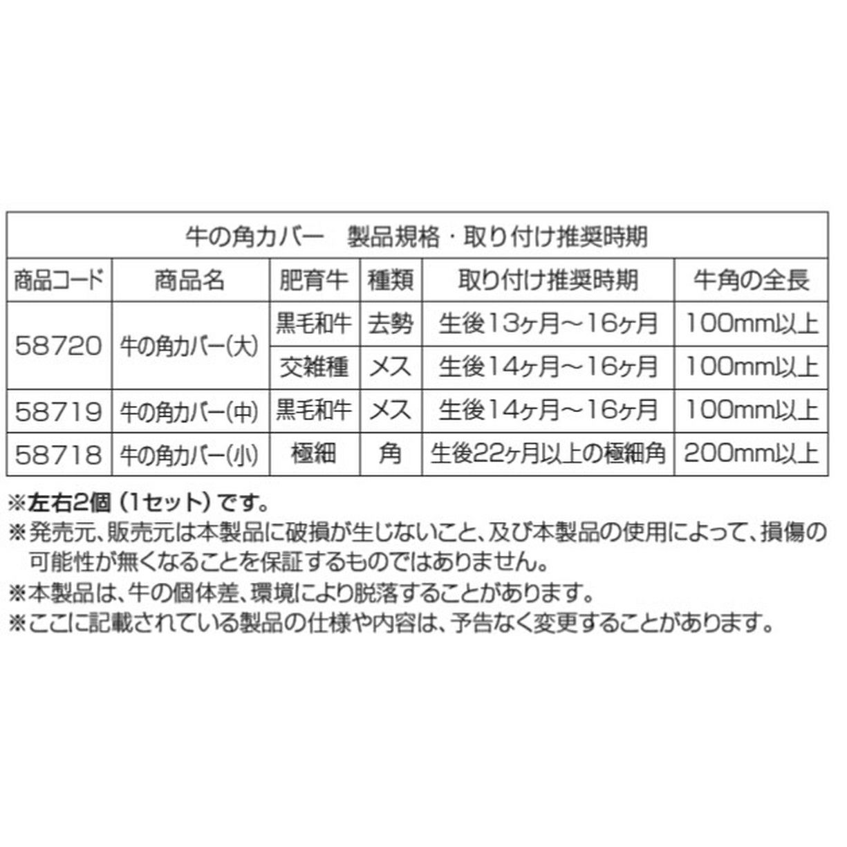 他の画像を見る 酪農用品 業務用 農業 農作業 和牛用 角突防止具 牛の角カバー 大 左右2個セット 小58718 中58719 大58720 サイズ大・中・小 選択可能 畜産 酪農 牧畜 産業動物 牛 豚 価格 ¥ 5,282 税込 カートに入れる お気に入りに登録する (0)