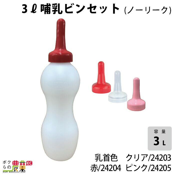 畜産用 3リットル哺乳ビンセット (ノーリーク) クリア乳首付 24203 赤乳首付 24204 ピンク乳首付 24205 乳 ミルク 子牛 畜産用品 酪農用品