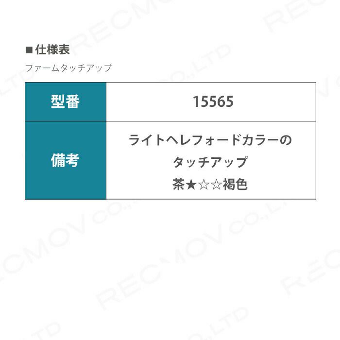 他の画像を見る 酪農用品 業務用 農業 農作業 畜産用 ファームタッチアップ 15565 ライトヘレフォード カラー タッチアップ 茶 褐色 毛 ケア 身だしなみ 畜産 酪農 牧畜 産業動物 価格 ¥ 3,357 税込 詳細を見る お気に入りに登録する (0)