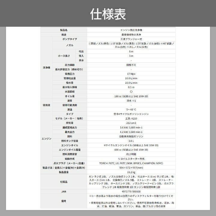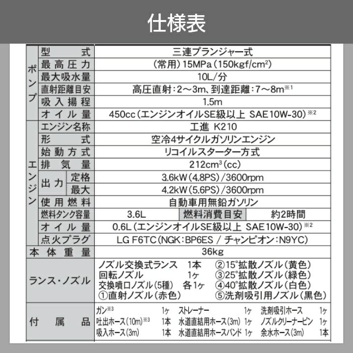 他の画像を見る 工進 エンジン 高圧洗浄機 エンジン 六段階切替式ノズル PA-370 付き 4ストローク 4サイクル 冷水 自吸式 高圧洗浄機 エンジン 工進 高圧洗浄機 エンジン式 JCE-1510UK 工進 六段階切替式ノズル PA-370 付き 4ストローク 4サイクル 冷水 自吸式 3/13~3/17クーポン対象 価格 ¥ 128,000 税込 詳細を見る お気に入りに登録する (0)