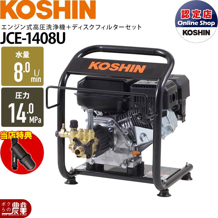 高圧洗浄機 工進 エンジン式 セット商品 高圧洗浄機 JCE-1408U+ディスクフィルターPA-261 4サイクル 冷水 自吸式