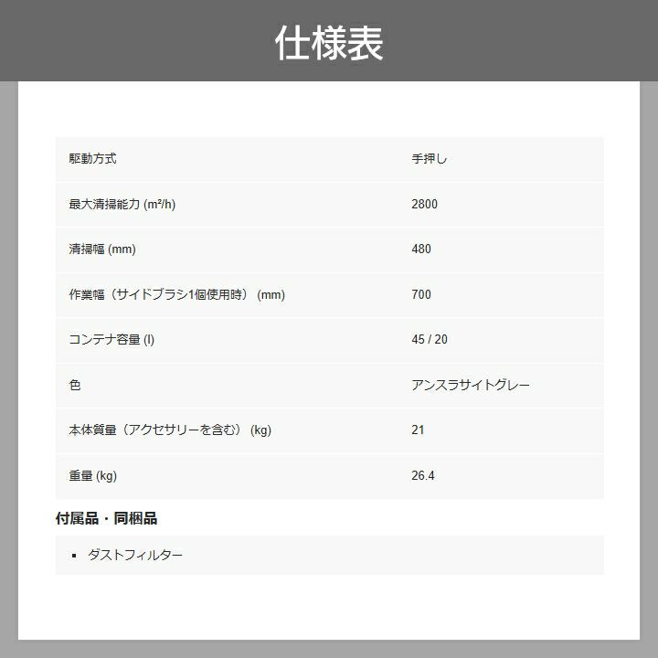 他の画像を見る ケルヒャー KM70/20C 業務用 スイーパー 掃除 ケルヒャー スイーパー KM70/20C 1.517-106.0 手押し式 スウィーパー 掃除機 クリーニング 業務用 KARCHER 価格 ¥ 99,800 税込 詳細を見る お気に入りに登録する (0)