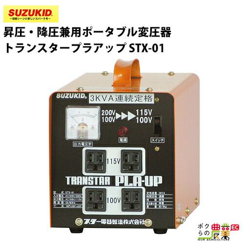 スズキッド 変圧器 100V 200V 兼用 スター電器 変圧器 STX-01 50/60Hz 100V 200V 兼用 トランスター プラアップ 昇圧 降圧 兼用 ポータブル変圧器 スズキッド