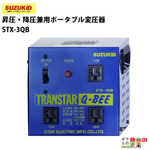 スズキッド 変圧器 100V 200V 兼用 スター電器 変圧器 STX-3QB 50/60Hz 100V 200V 兼用 トランスターキュービー 昇圧 降圧 兼用 ポータブル変圧器 スズキッド