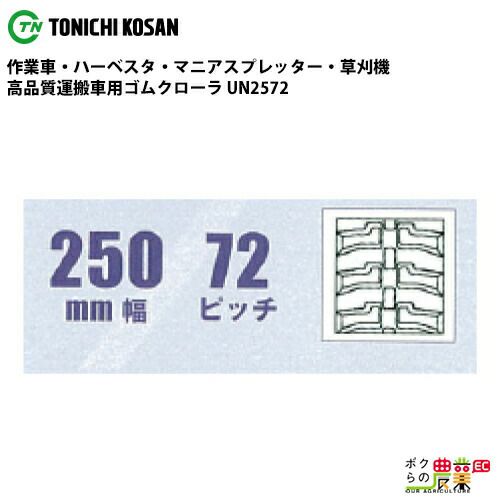 運搬車・作業車用クローラ 250mm幅×72ピッチ コマ数47[UN2572] ※こちらの商品はサイズ違いによる返品はお受けできません。  商品適合などについてご心配な点がございましたら注文前にご相談下さい。 ※ゴムクローラの寸法測定方法は下記当店ページ内でご確認いただけます。  http://store.shopping.yahoo.co.jp/bokunou/cgcitiran.html