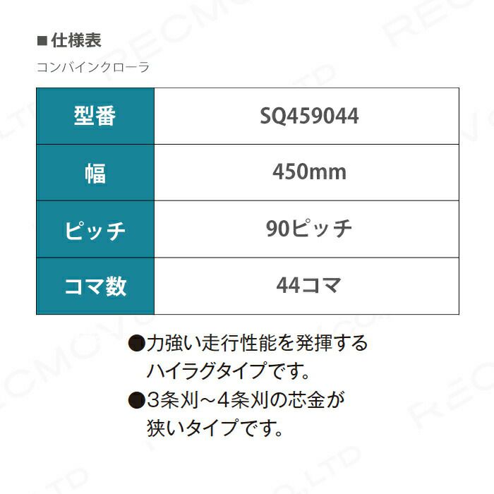 他の画像を見る 法人様限定 営業所止 法人宛のみ宅配可 コンバインゴムクローラ 450幅×90ピッチ Nタイプ コマ数56 SQ4590シリーズ [Eパターン] SQ459056 1本 価格 ¥ 143,582 税込 詳細を見る お気に入りに登録する (0)