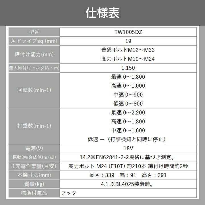 他の画像を見る マキタ 充電式 レンチ 電動工具 穴あけ DIY マキタ 充電式 インパクトレンチ TW1005DZ 18V 本体のみ バッテリ・充電器別売 ソケット別売 makita 価格 ¥ 54,160 税込 カートに入れる お気に入りに登録する (0)