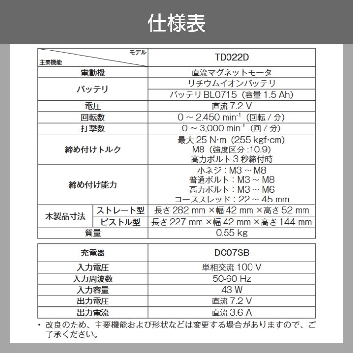 他の画像を見る マキタ ペンインパクトドライバ 7.2V バッテリー付 充電器付 ケース付 マキタ 充電式インパクトドライバ TD022DSHX TD022DSHXO TD022DSHXB TD022DSHXW 価格 ¥ 21,703 税込 カートに入れる お気に入りに登録する (0)