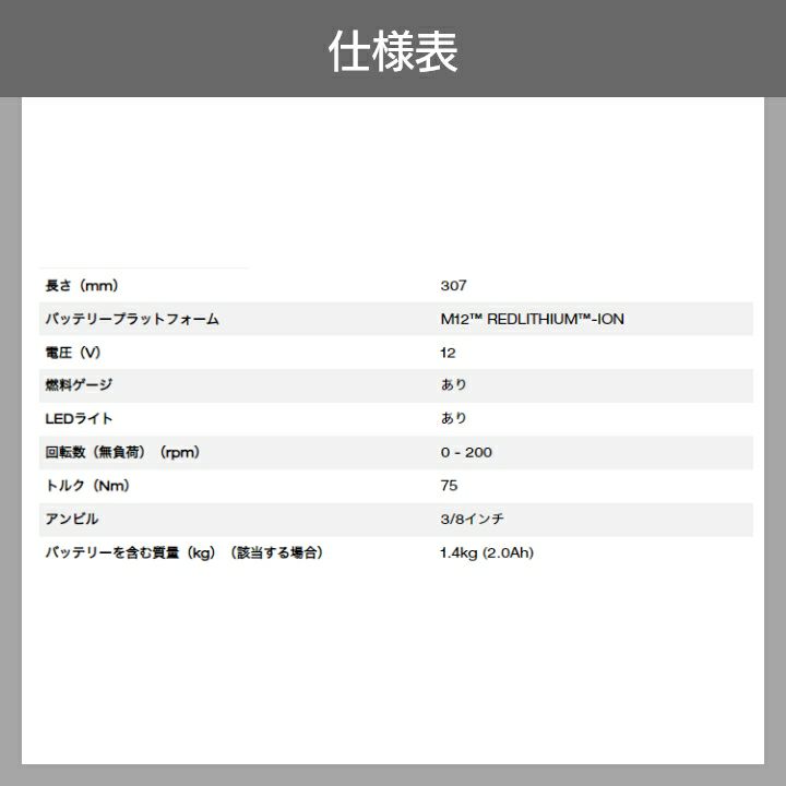 他の画像を見る ミルウォーキー M12 FUEL ミルウォーキー ラチェットレンチ 3/8インチ 12V M12 IR-0B APJ バッテリー 充電器別売 milwaukee 価格 ¥ 20,262 税込 詳細を見る お気に入りに登録する (0)