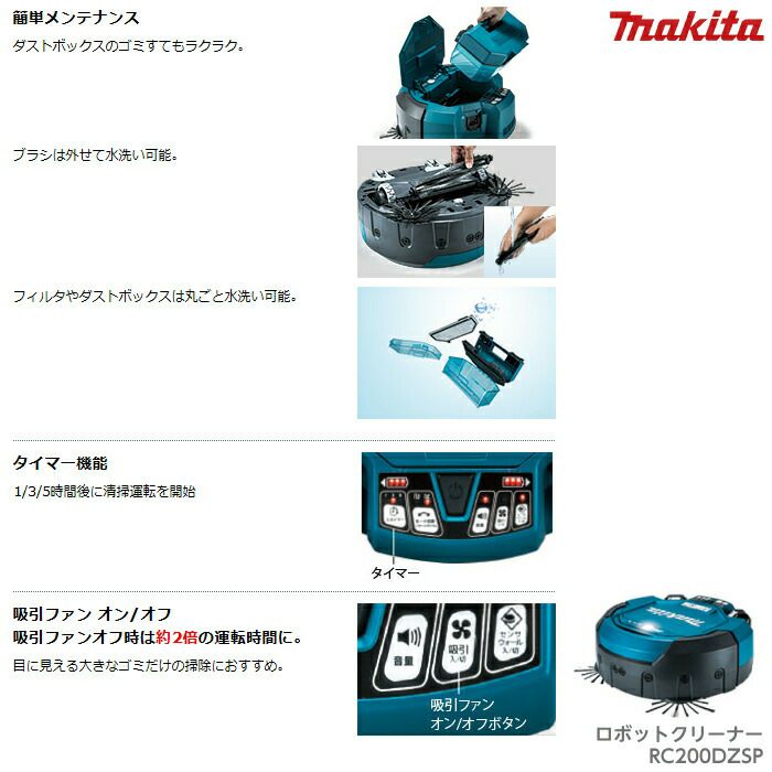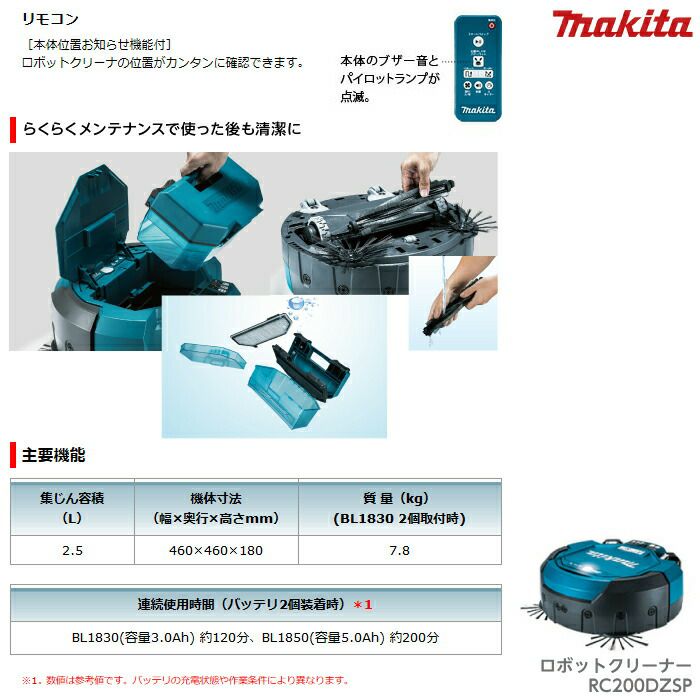 他の画像を見る マキタ 清掃用品 お掃除 クリーナー マキタ makita ロボットクリーナー 本体のみ RC200DZSP ※バッテリー・充電器別売 バッテリー別売 価格 ¥ 102,631 税込 詳細を見る お気に入りに登録する (0)