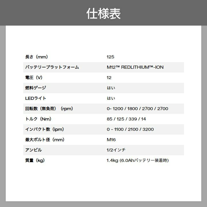 他の画像を見る ミルウォーキー M18 FUEL ミルウォーキー インパクトレンチ 1/2インチ 1356Nm 18V M18 FHIWF12-502X JP バッテリー 充電器付属 価格 ¥ 75,169 税込 詳細を見る お気に入りに登録する (0)
