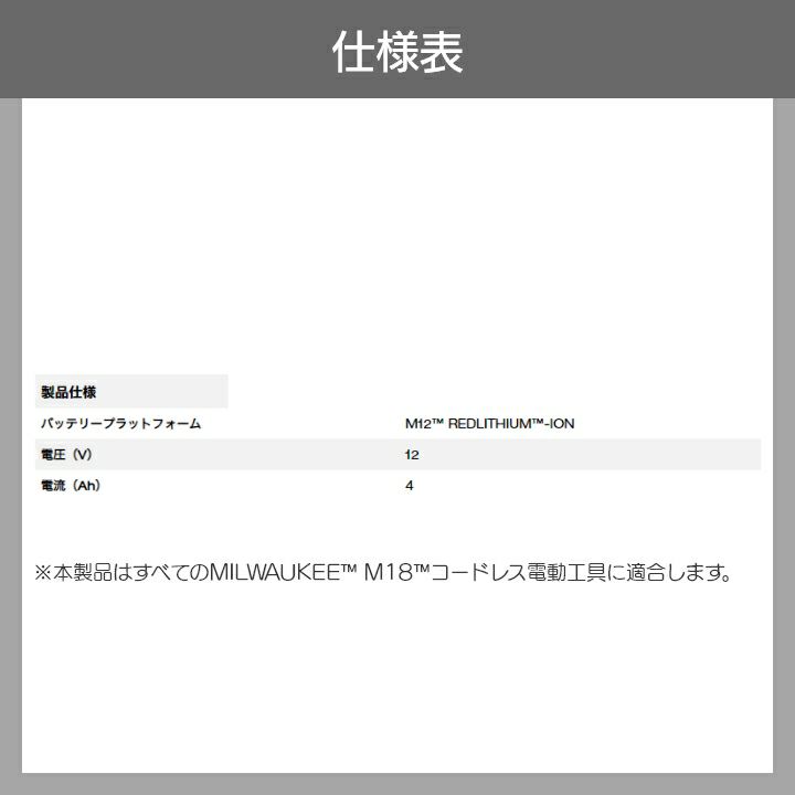 他の画像を見る ミルウォーキー バッテリーのみ ミルウォーキー バッテリー M12 B4 JP 4.0Ahバッテリー 12V 充電器別売 Milwaukee 価格 ¥ 9,810 税込 詳細を見る お気に入りに登録する (0)