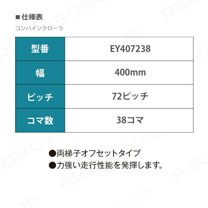 他の画像を見る 法人様限定 営業所止 法人宛のみ宅配可 コンバインゴムクローラ 400幅×72ピッチ 両梯子オフセット コマ数38 EY4072 OJパターン EY407238 1本 価格 ¥ 82,710 税込 詳細を見る お気に入りに登録する (0)