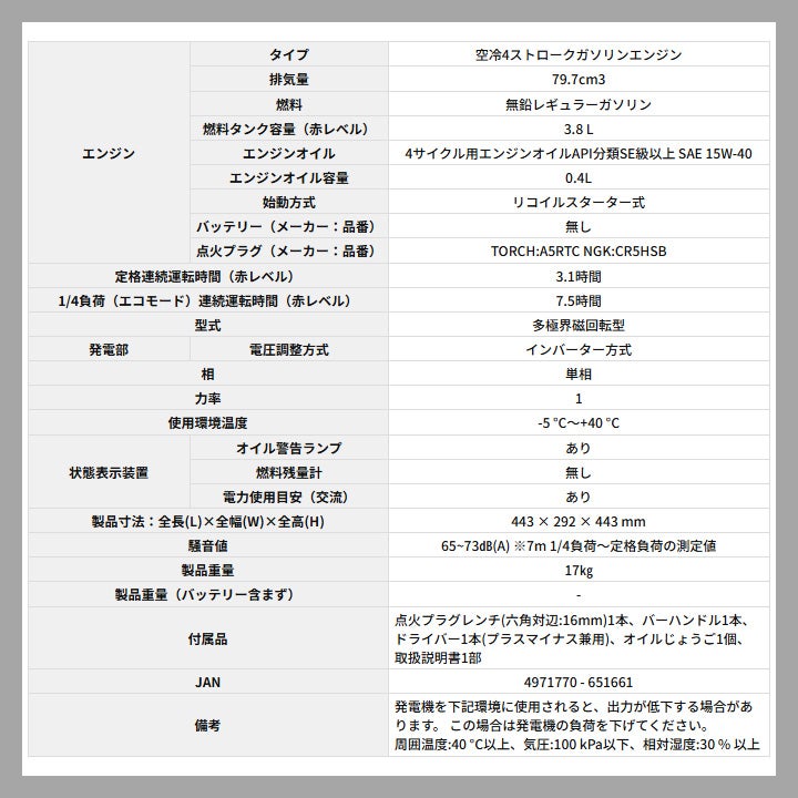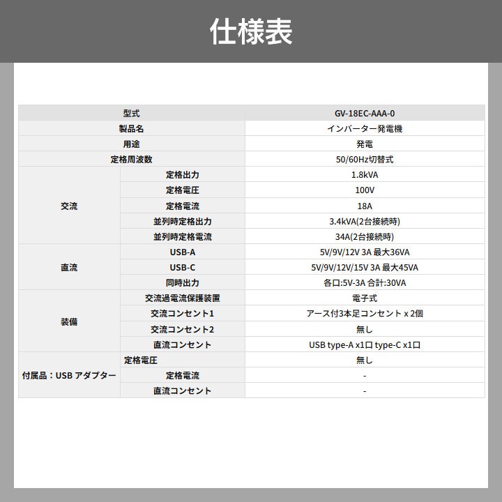 他の画像を見る 工進 発電機 インバーター KOSHIN コーシン 災害 防災 キャンプ 工進 発電機 GV-18EC インバーター発電機 認定店限定 1.8kVA 100V 18A リコイルスターター KOSHIN コーシン 価格 ¥ 69,800 税込 在庫切れ 再入荷お知らせ お気に入りに登録する (0)