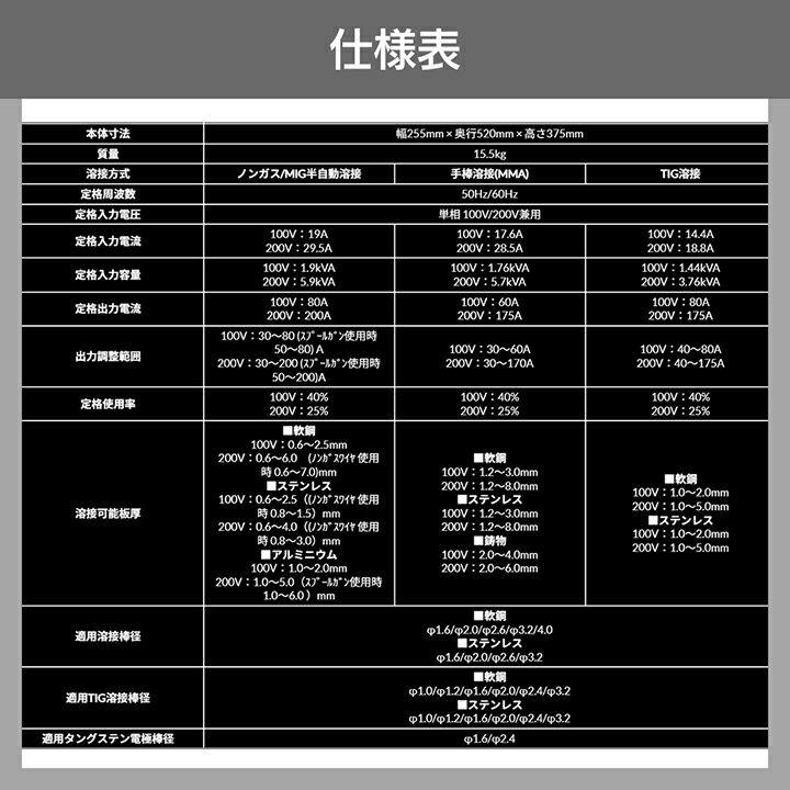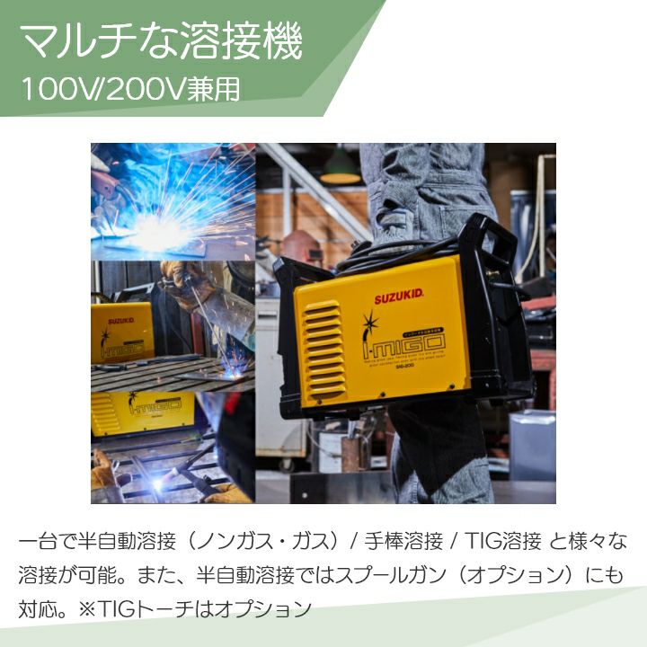 他の画像を見る SUZUKID 溶接機 SIG-200 i-MIGO200 アイミーゴ200 半自動溶接機 50/60Hz 100V/200V 兼用 インバータ スズキッド スター電器 価格 ¥ 238,954 税込 カートに入れる お気に入りに登録する (0)