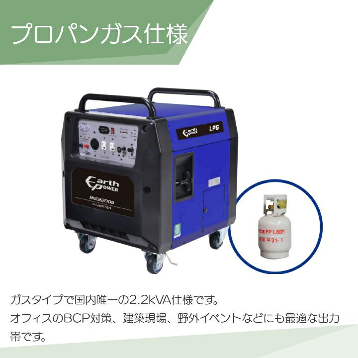 他の画像を見る 営業所止め アースパワー 発電機 インバーター ウィルビー 災害 防災 キャンプ アースパワー 発電機 MGC2200GA02 インバーター発電機 2.2kVA プロパンガス式 キャスター付 ウィルビー Earth POWER 電源 発電 防災 停電 価格 ¥ 339,819 税込 在庫切れ 再入荷お知らせ お気に入りに登録する (0)