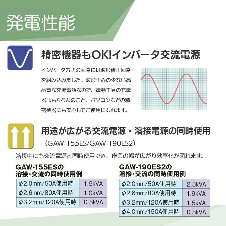 他の画像を見る 営業所止 設置場所要確認 デンヨー 発電機 インバーター 災害 防災 キャンプ デンヨー 溶接機 GAW-190ES2 インバーター発電機 ウェルダー 3500W 3.5kVA インバータ発電機 ガソリンエンジン 価格 ¥ 401,500 税込 在庫切れ 詳細を見る お気に入りに登録する (0)