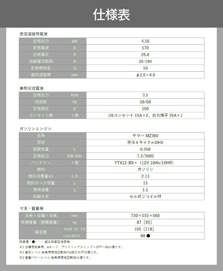 他の画像を見る スズキッド 溶接機 100v 半自動 スター電器 溶接機 SAY-160 50/60Hz 兼用 単相 200V 半自動溶接機 ノンガス直流 アーキュリー160 スズキッド SUZUKID 価格 ¥ 115,730 税込 詳細を見る お気に入りに登録する (0)