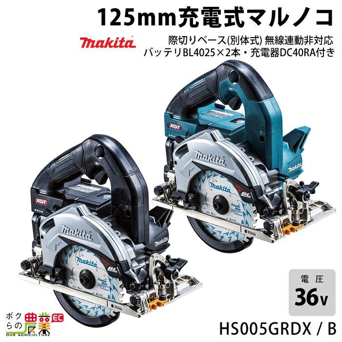 マキタ 40Vmax 充電式 マルノコ 125mm HS005GRDX HS005GRDXB 青 黒 際切りベース 別体式 無線連動非対応