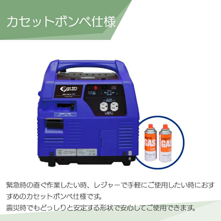 アースパワー 発電機 インバーター ウィルビー 災害 防災 キャンプ アースパワー 発電機 MGC901GBA11 インバーター発電機 0.9kVA カセットボンベ式 ウィルビー Earth POWER 電源 発電 防災 停電
