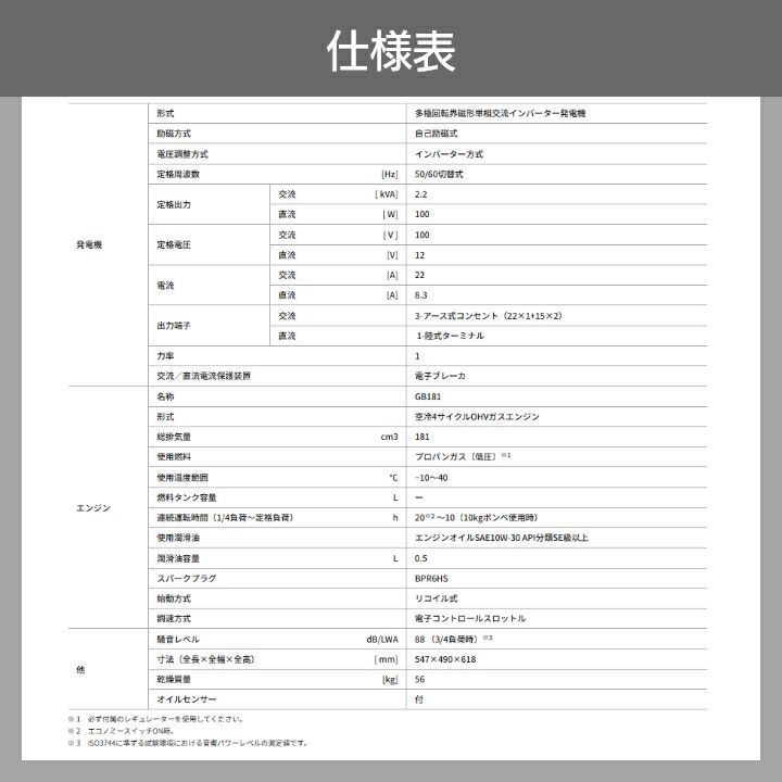 営業所止め アースパワー 発電機 インバーター ウィルビー 災害 防災 キャンプ アースパワー 発電機 MGC2200GA02 インバーター発電機 2.2kVA プロパンガス式 キャスター付 ウィルビー Earth POWER 電源 発電 防災 停電