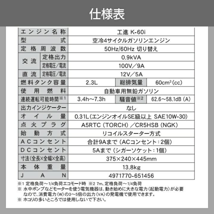 工進 発電機 インバーター KOSHIN コーシン 災害 防災 キャンプ